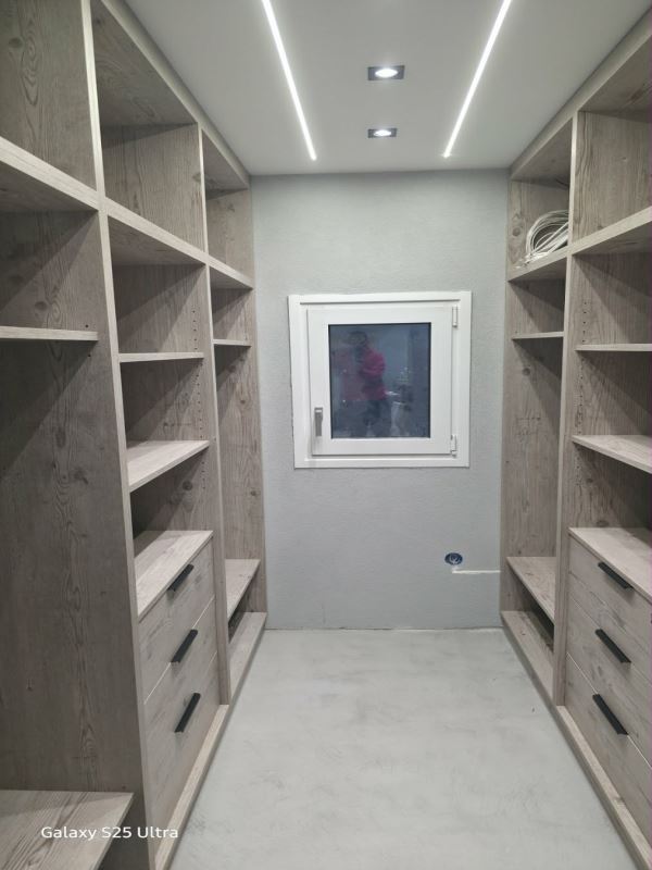 Διαμόρφωση παλιάς χτιστής ντουλάπας με εσωτερικές καλύψεις από έγχρωμη μελαμίνη, κουτιά από έγχρωμη μελαμίνη EGGER , πόρτες μέχρι κάτω από έγχρωμη μελαμίνη ΑΚΡΙΤΑΣ, μεντεσέδες BLUM και μηχανισμοί push to open για άνοιγμα χωρίς πόμολα.